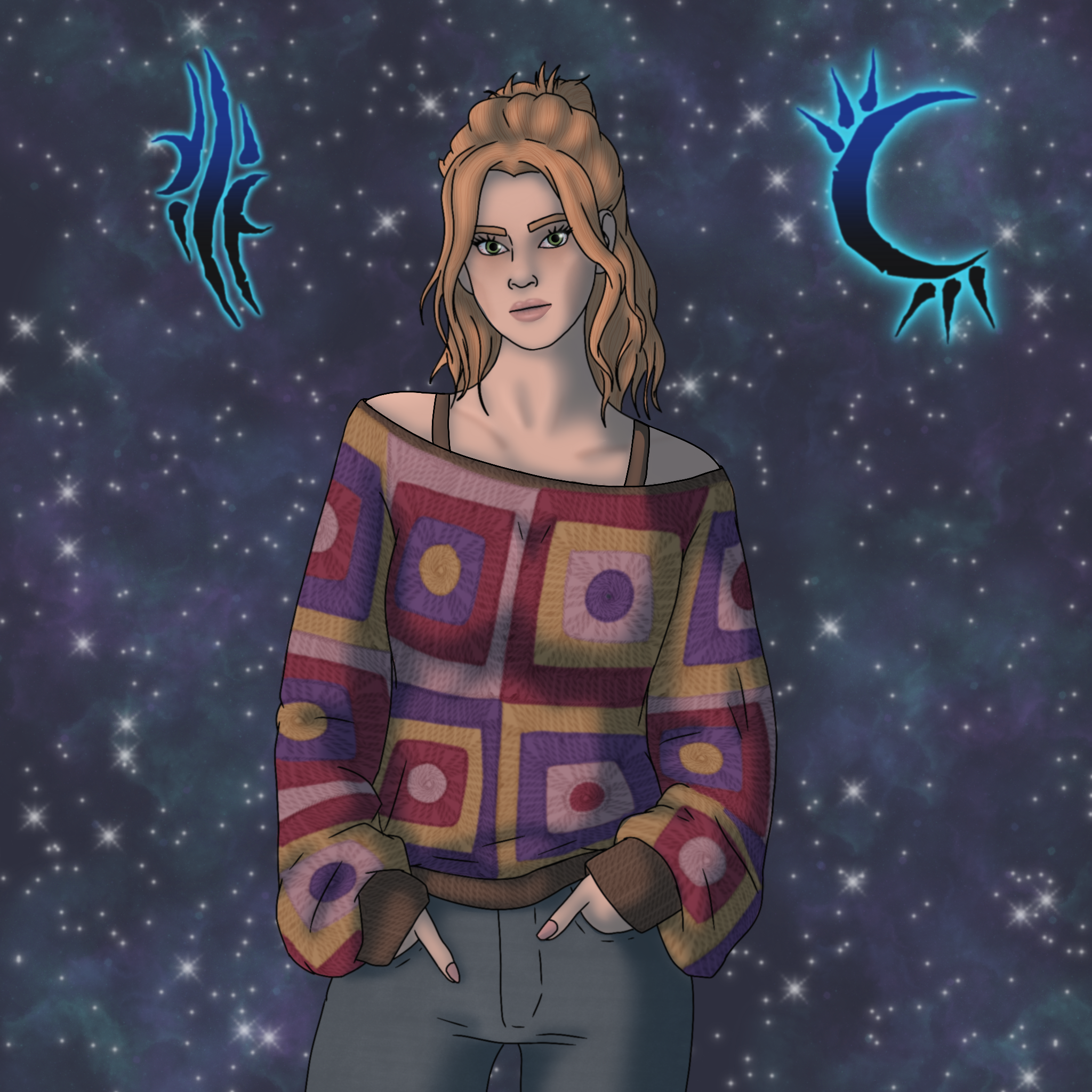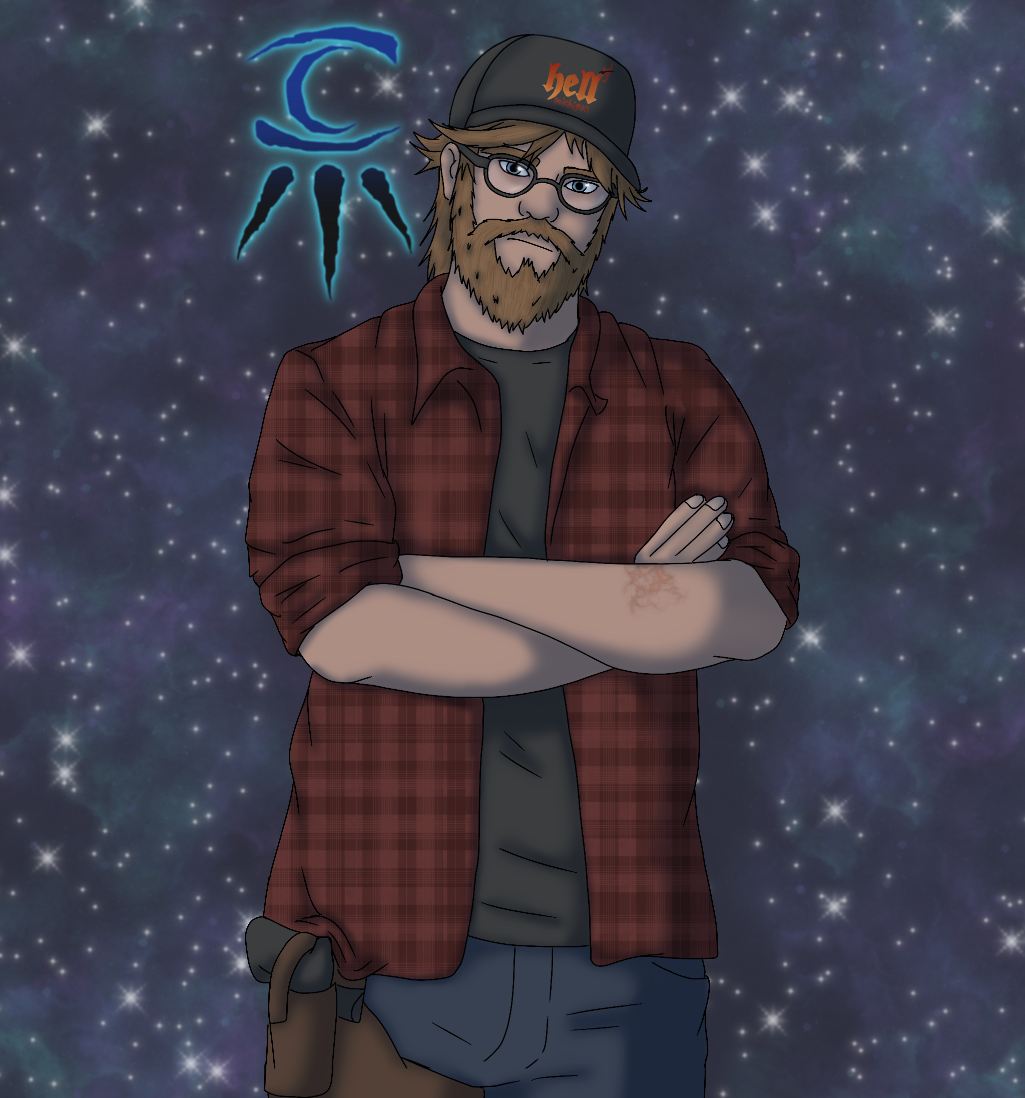 Quinn is a perceptive, dry-humored survivor shaped by childhood abuse. His First Change leaving him burdened with deep, layered guilt and a need to seek joy, Raised among the Werewolf Nation, Quinn believes in compassion but distrusts easy ideals, often using humor and clever defiance to challenge hypocrisy and protect the vulnerable. As a Ragabash and Kinseeker, he strives to help others avoid the isolation and trauma that defined his own life, channeling his pain into harm-reduction work, and fiercely loyal bonds.